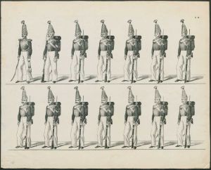 Serie af exercitsplancher for russisk infanteri og kavalleri, ca. 1820-30