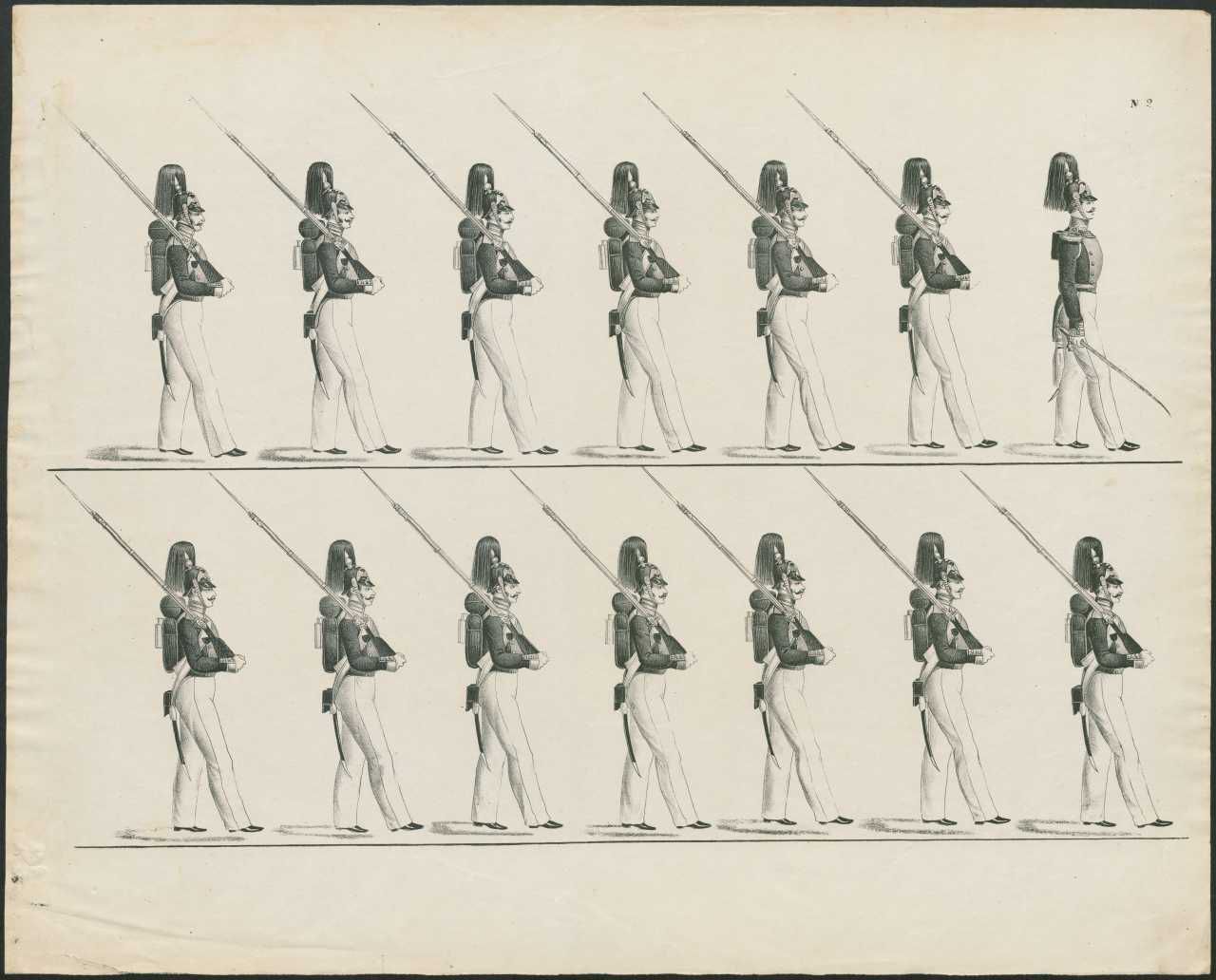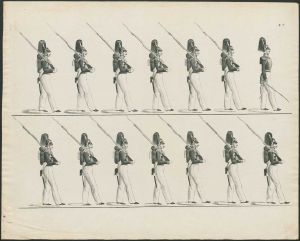 Serie af exercitsplancher for russisk infanteri og kavalleri, ca. 1820-30. Fra Gudim-Levkovitj' Samling.