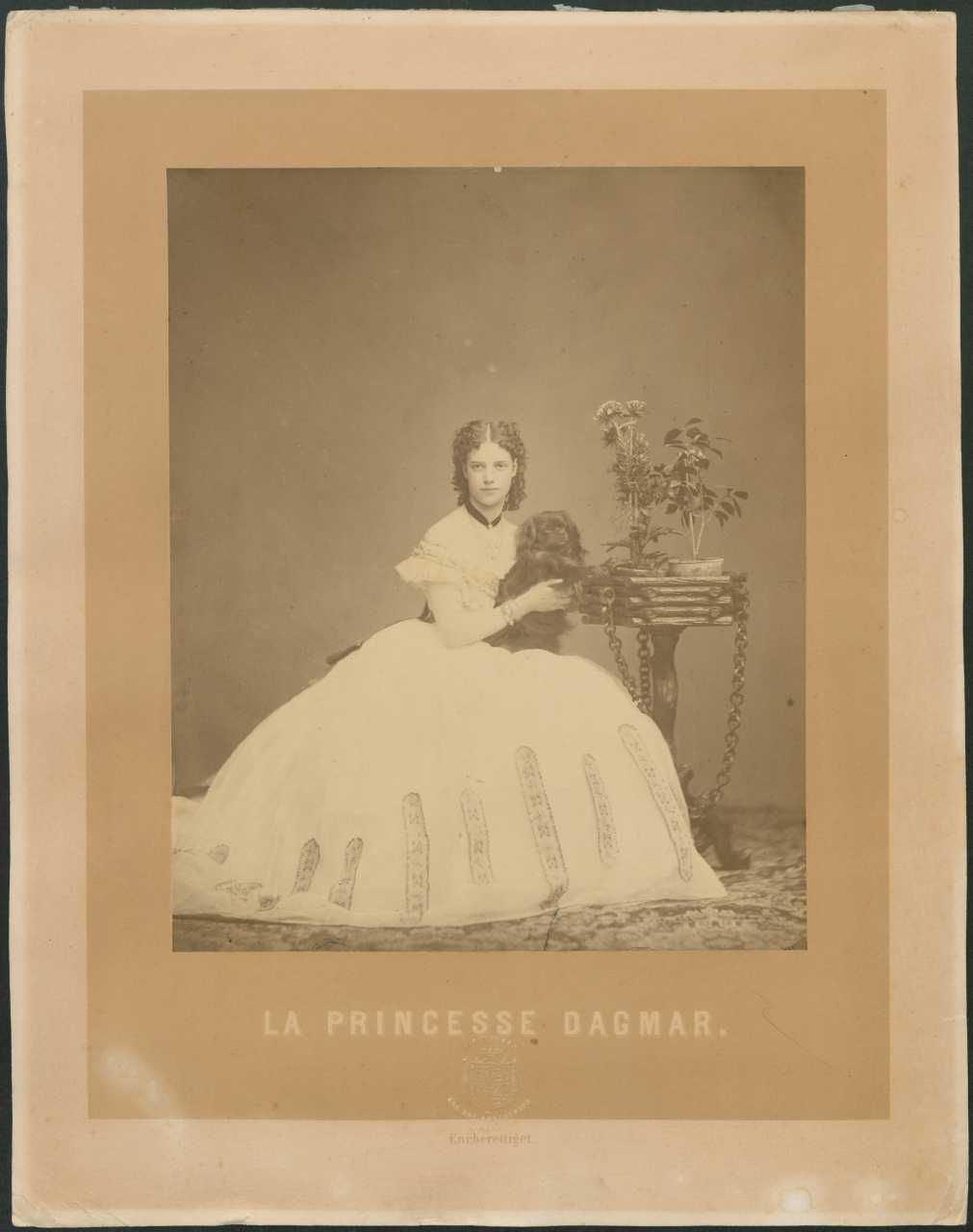 Portrætfotografi af prinsesse Dagmar med sin hund, 1866