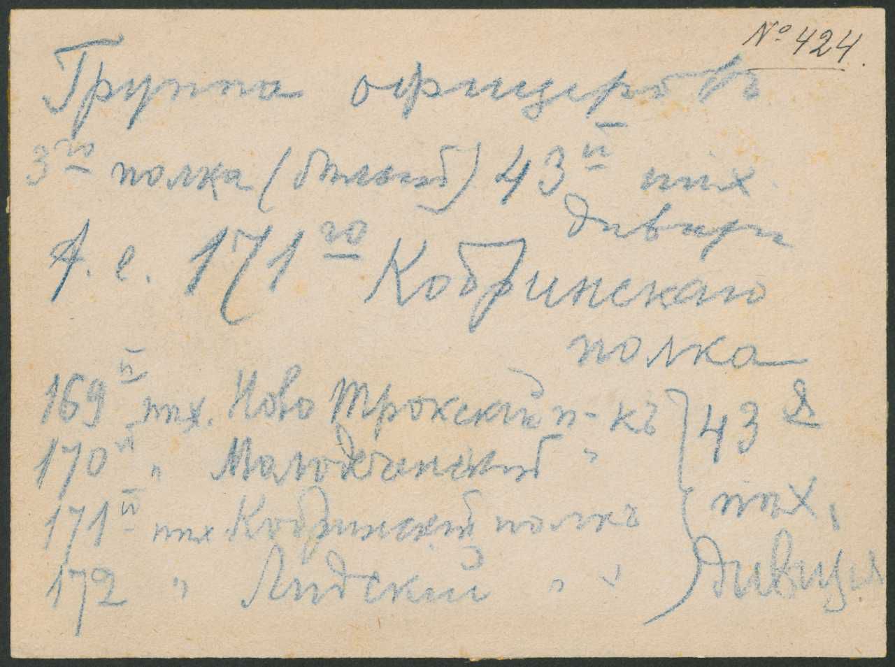 171-й пехотный Кобринский полк, indgik i 43. infanteridivision. Regimentet lå i Grodno.