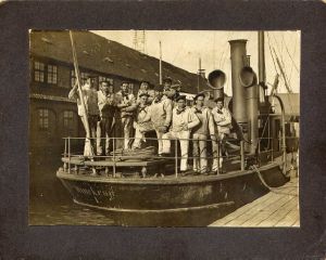 Foto: 1896. Minekran nr.1 i Søminegraven. Besætningen samlet i agterstævnen.