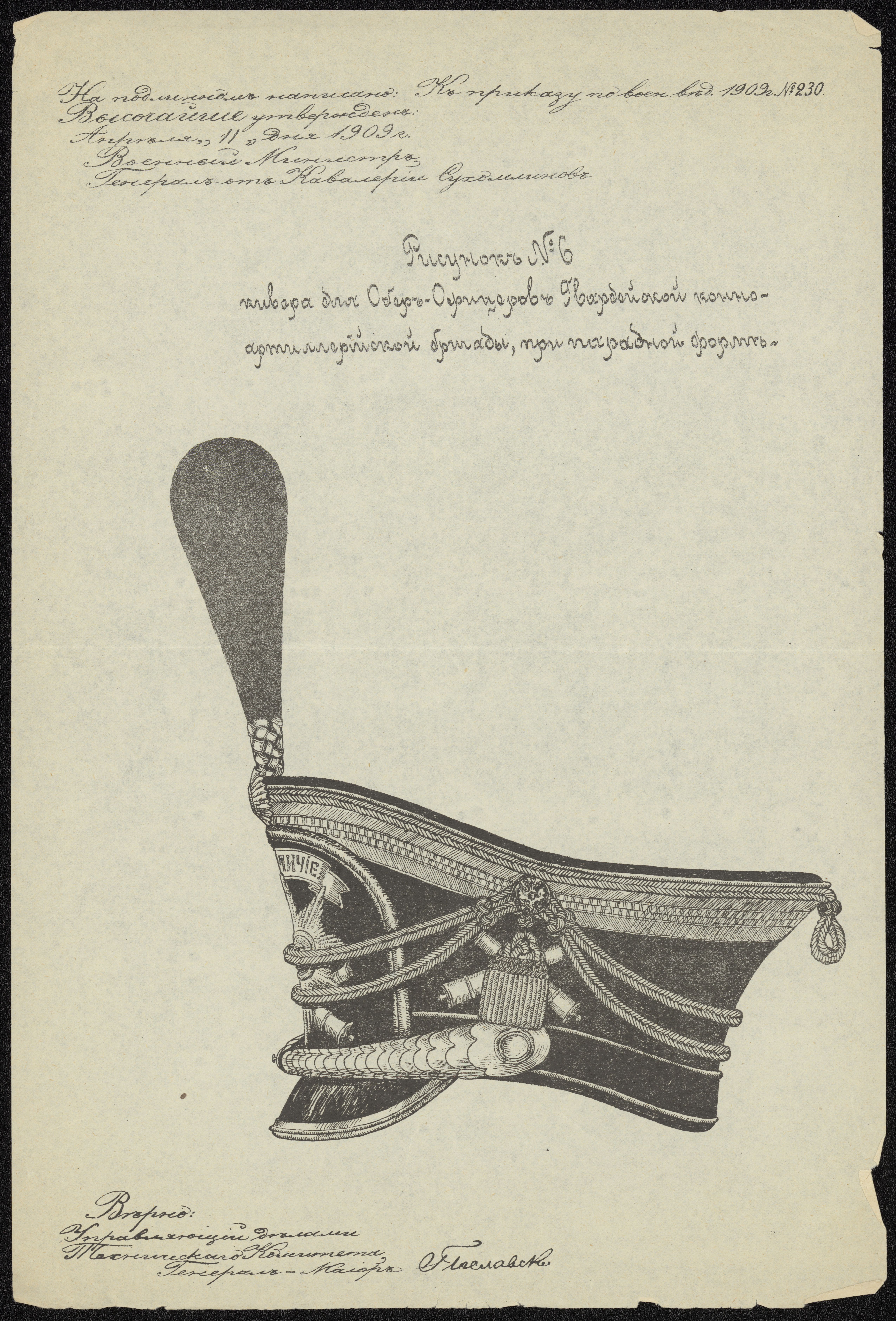 Kopier af approbationstegninger af uniformshatte, 1908-09