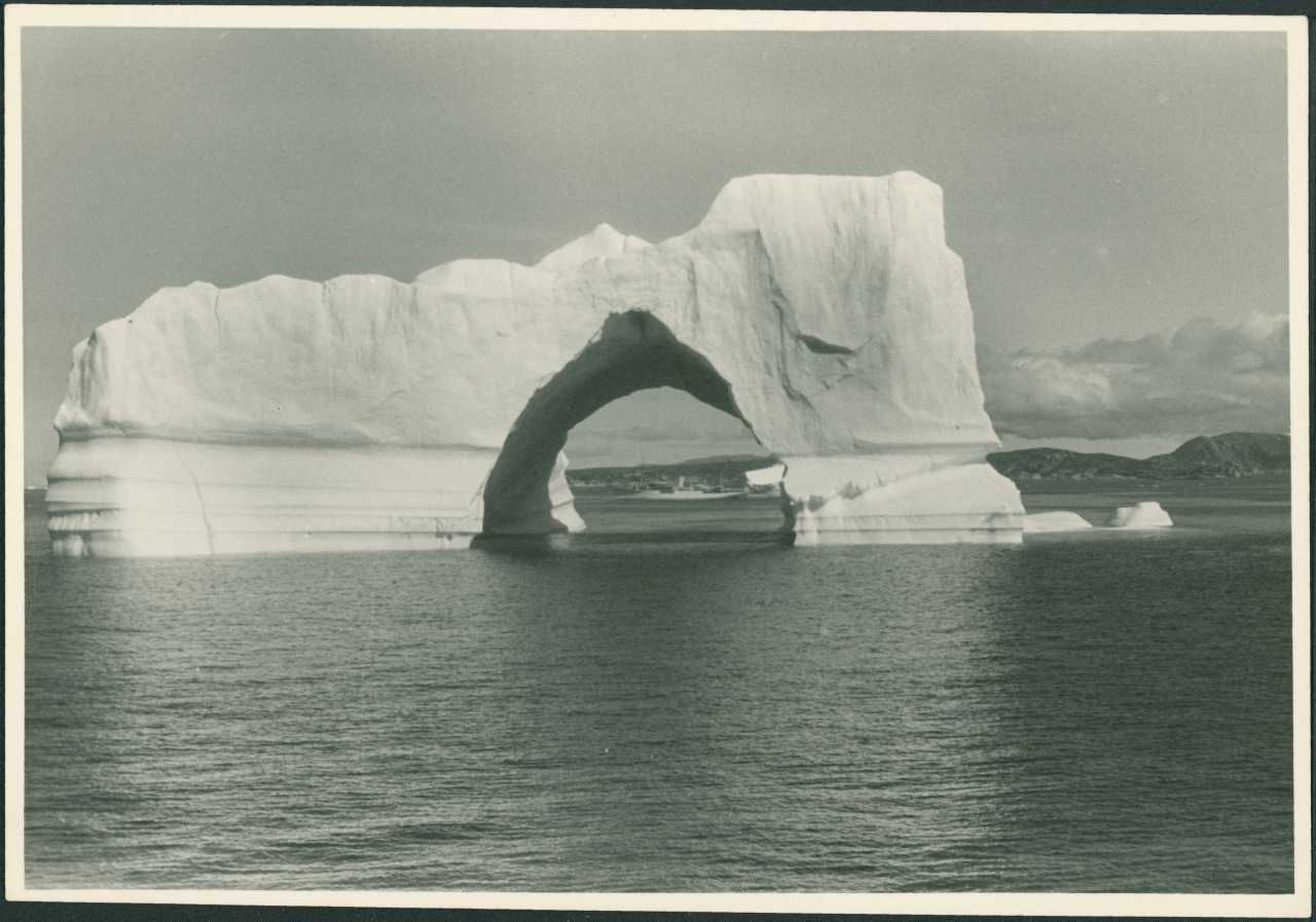 Arkivalie Brev til viceadmiral A.H. Vedel fra Erik Bandier. Dateret 18/11 1952. Brevet er skrevet bag på foto af et isbjerg.