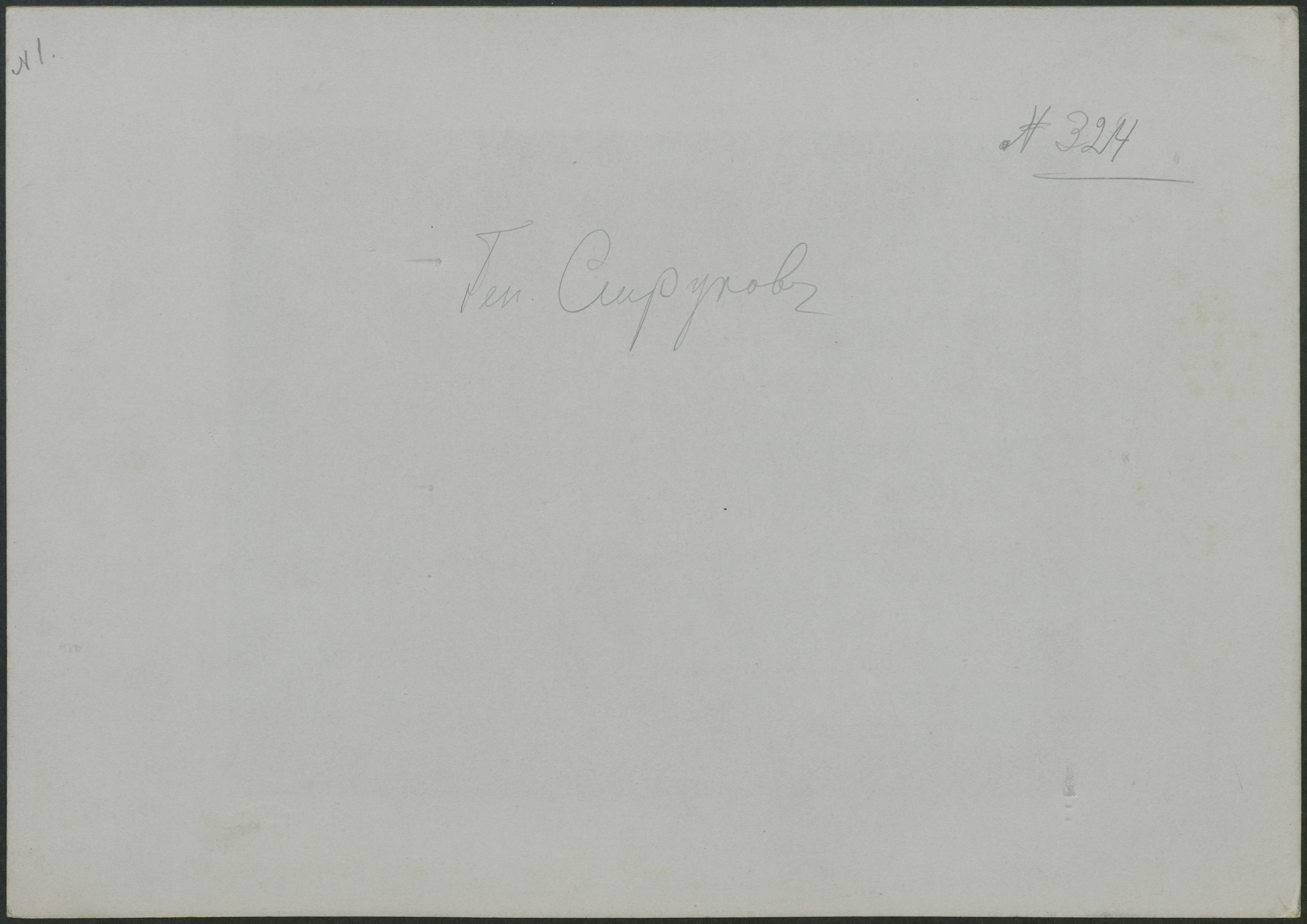 Fotografi af general Dmitrij Strukhov til hest, bagside