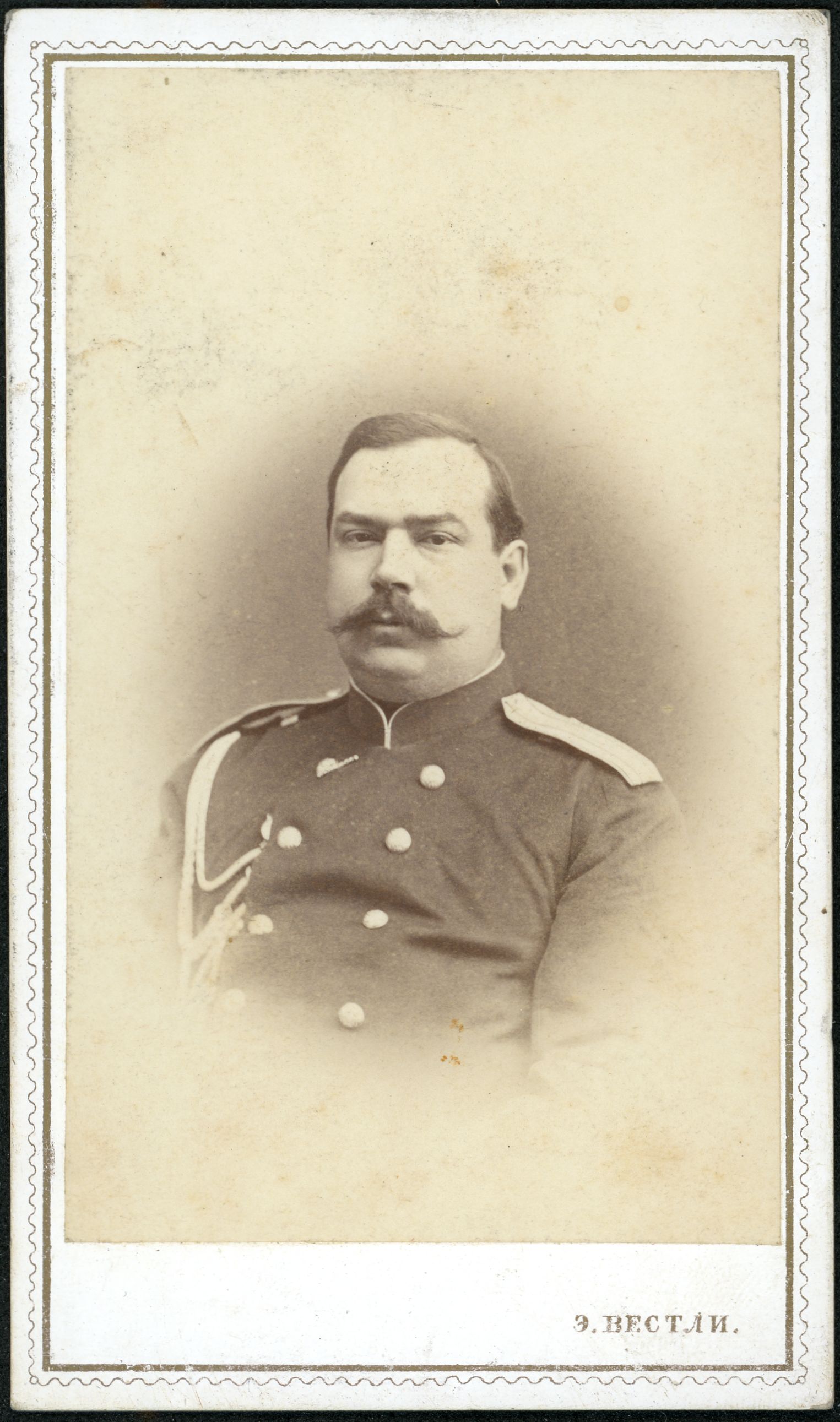 Fotografisk portræt af uidentificeret officer med adjudantsnor. Fra Gudim-Levkovitj-samlingen.