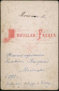 Fotografisk portræt af oberst Valerian Melnitsky, bagside