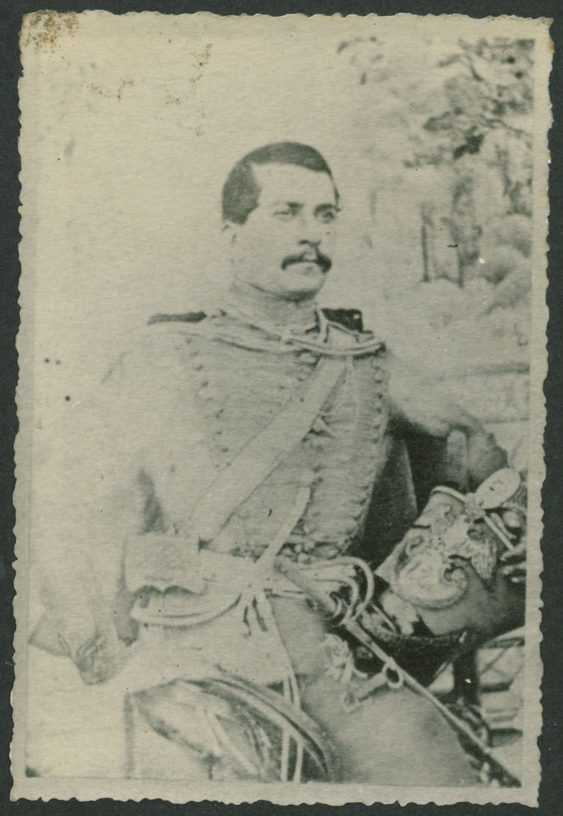 Fotografi af stabsritmester Arzumanov fra det 12. Ingermanlandske Husarregiment, ca. 1850. Hans uniform er i samlingen på Tøjhusmuseet.