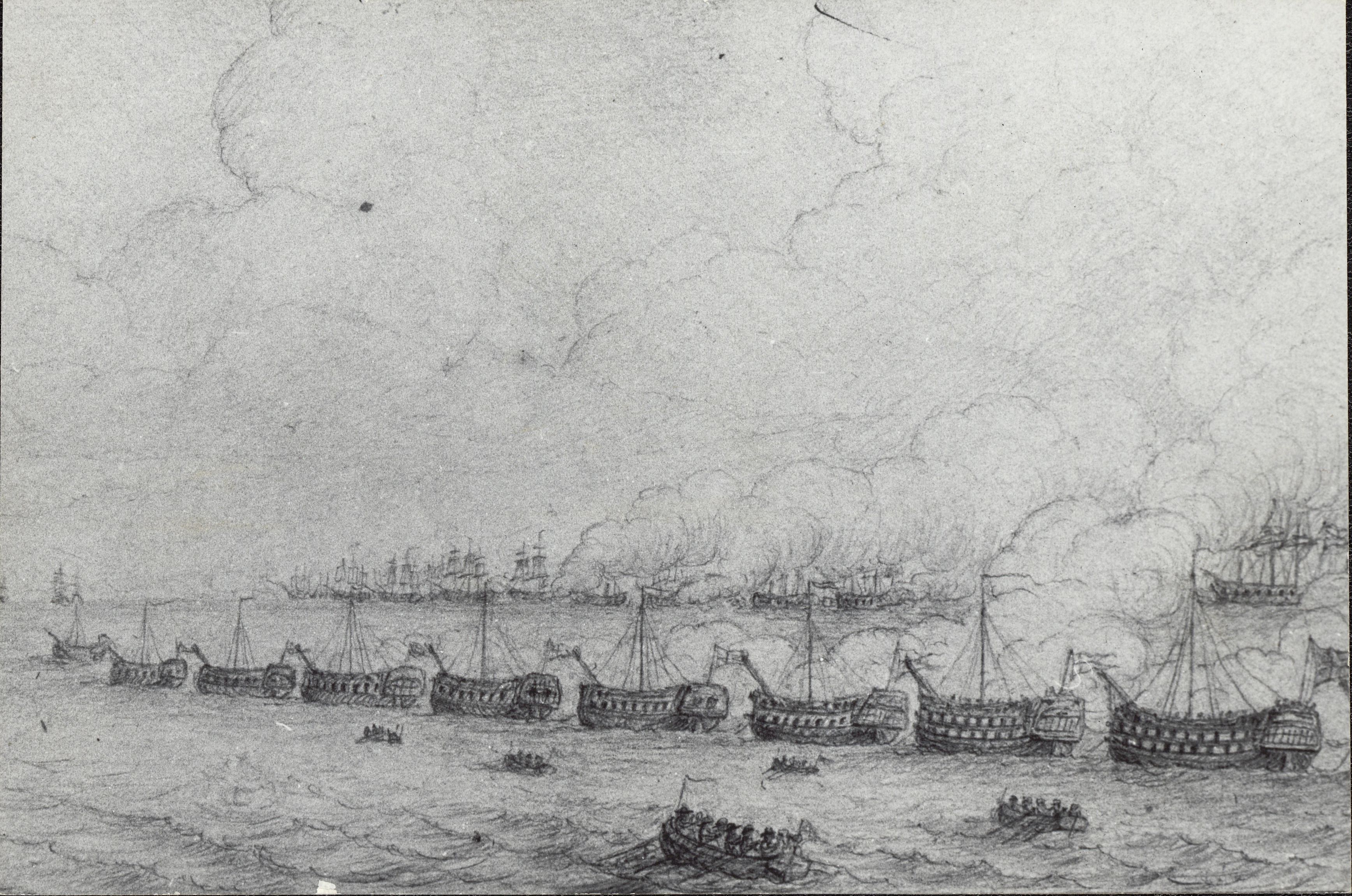 Foto af tegning af Slaget på Reden, 1801