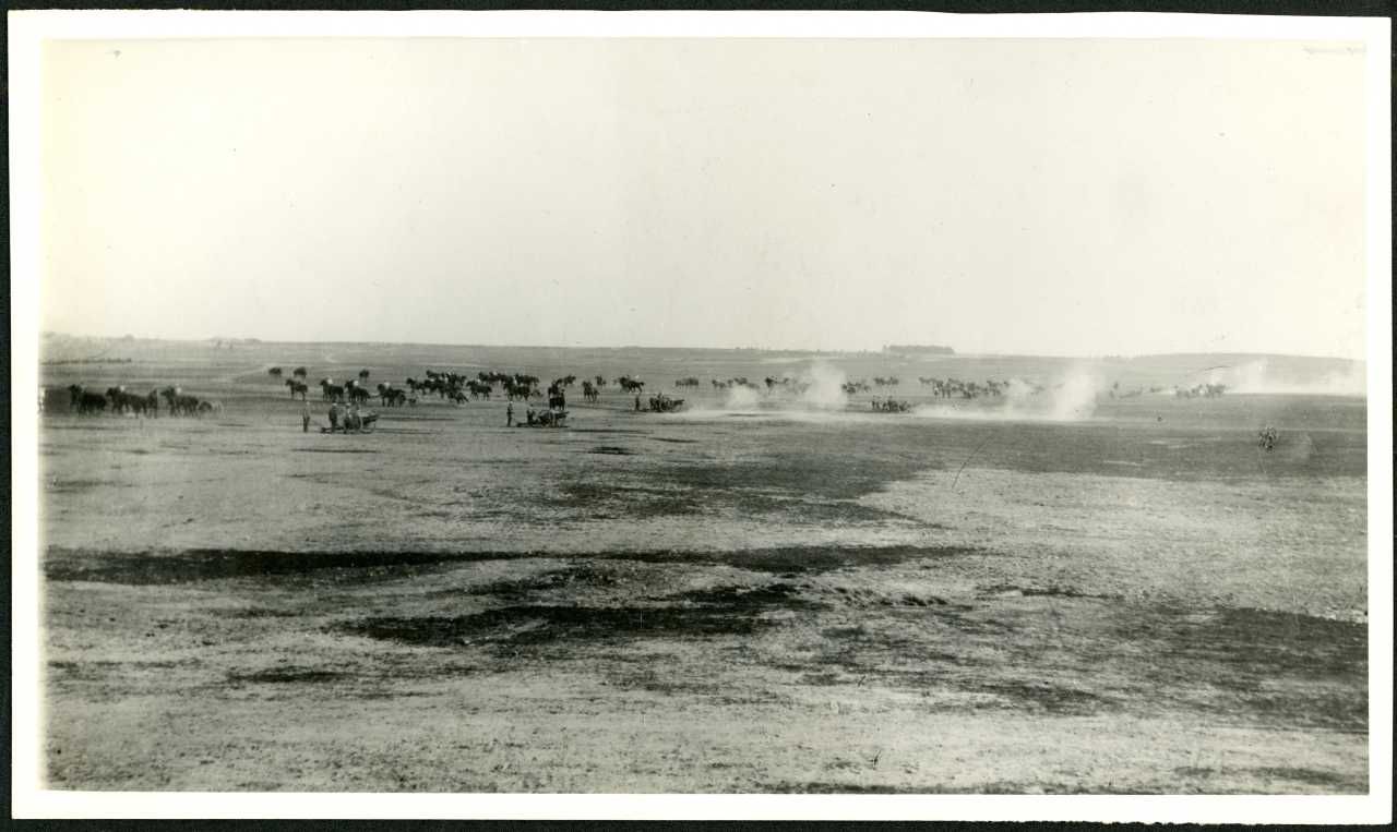 Fotografi fra en øvelse med Hestgardeartilleriet - Лейб-гвардии Конная артиллерия. Ukendt sted og år. Fra Gudim-Levkovitj-samlingen.