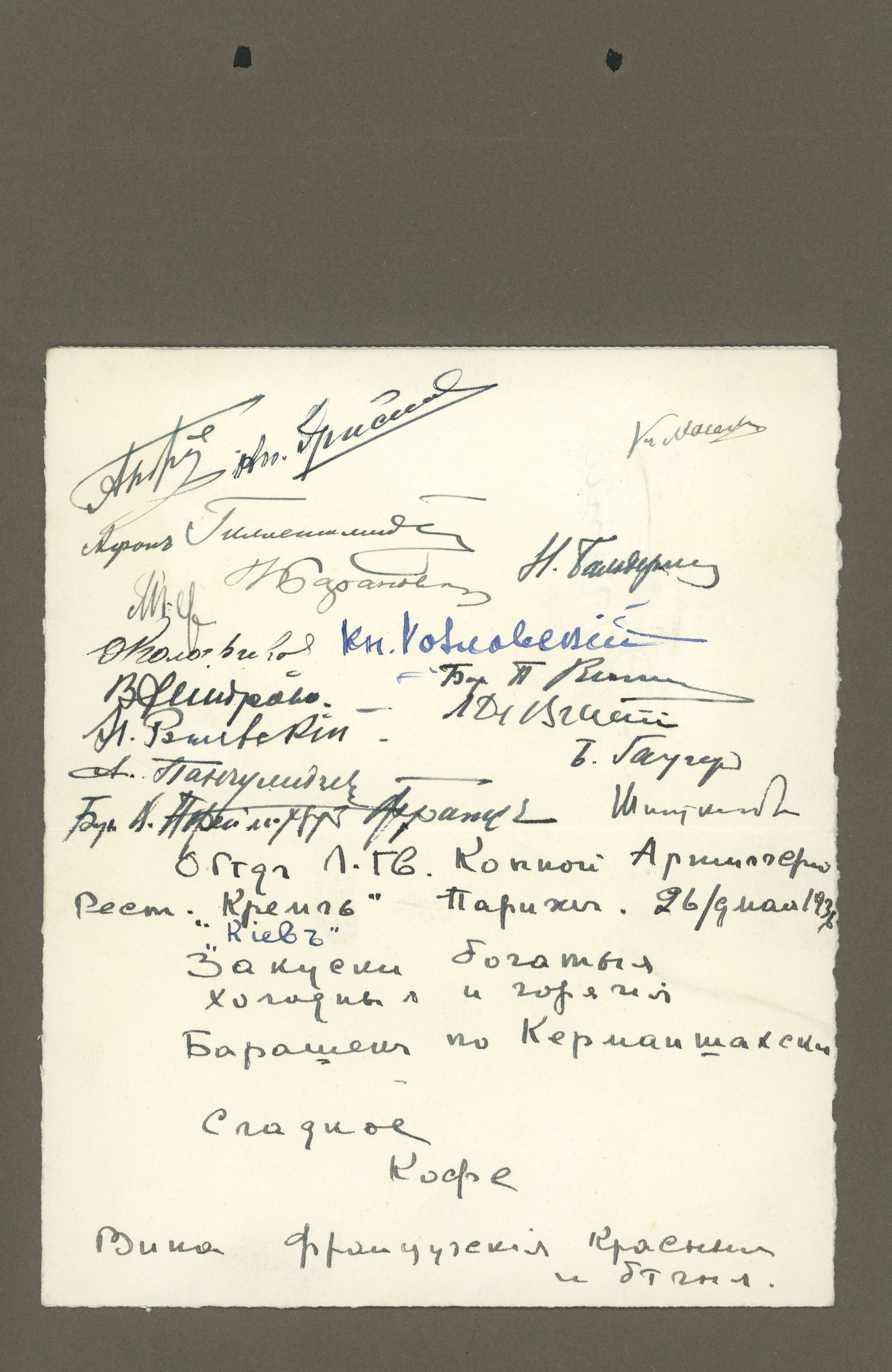 Dokumenter, udklip og breve vedr. russiske officerer i eksil i Frankrig. Fra Gudim-Levkovitj' Samling.