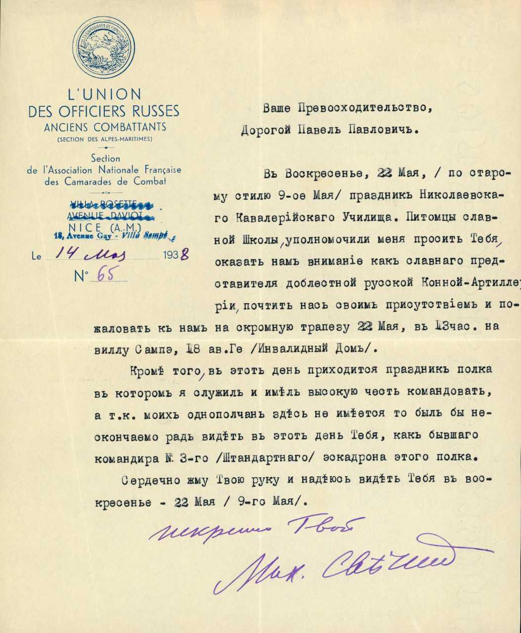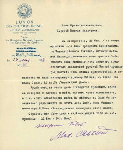 Dokumenter, udklip og breve vedr. russiske officerer i eksil i Frankrig