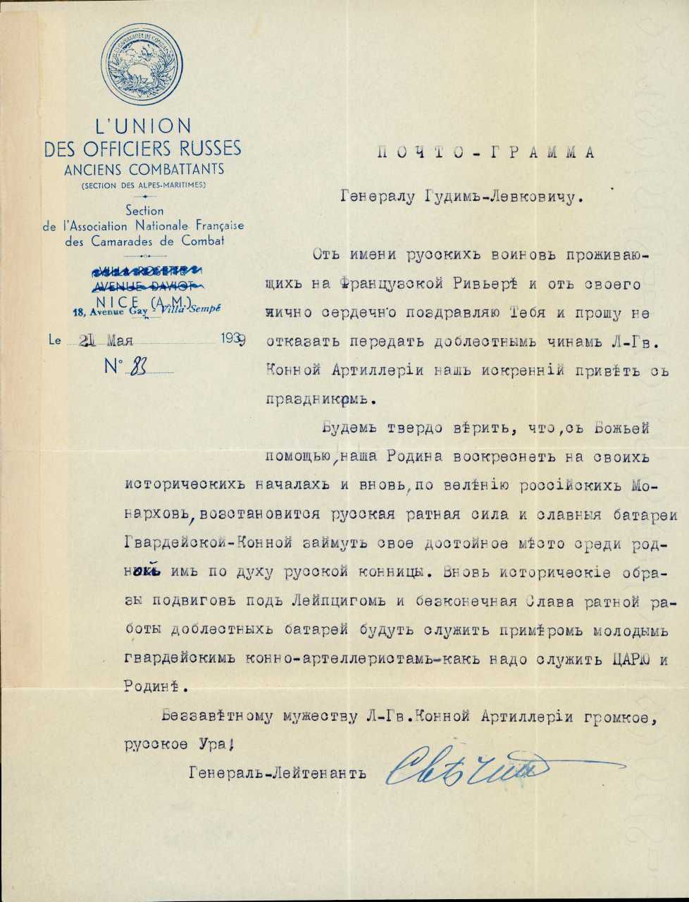Dokumenter, udklip og breve vedr. russiske officerer i eksil i Frankrig. Fra Gudim-Levkovitj' Samling.