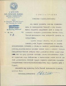 Dokumenter, udklip og breve vedr. russiske officerer i eksil i Frankrig