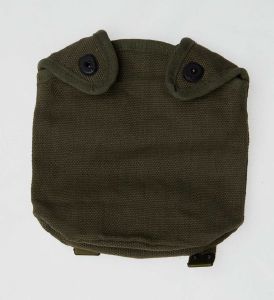 "Hylster til feltflaske M/1959 for alle personelgrupper af alle værn. \n\nGrønligt webbing, lukkes foroven med to sorte trykknapper, på bagsiden to stroper med glidespænde, samt fire stropper syet fast så de danner sløjfer.",